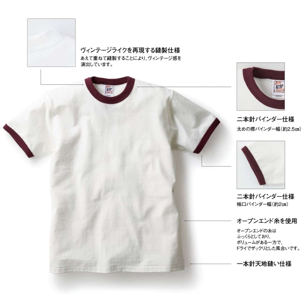 ボディ:CROSS STITCH 6.2 oz オープンエンド マックスウェイト リンガーTシャツ カラー:ナチュラル×スミクロ インク:ブラック